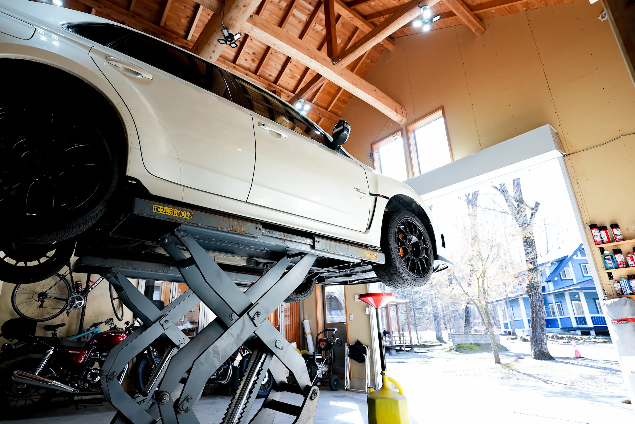 もちろん、長年の夢だった車の整備などが行えるカーリフト付きガレージもあります。